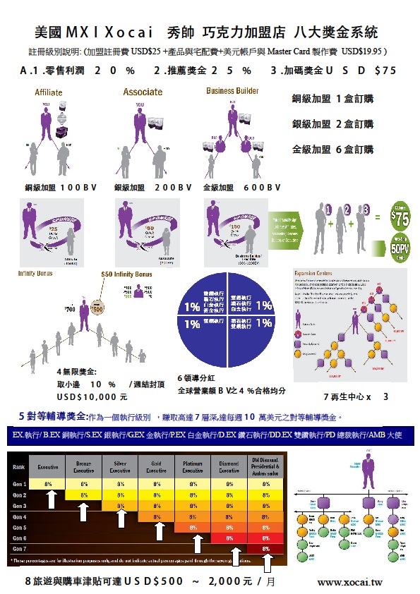 美國 MXI X o c a i " 秀帥 "巧克力加盟店 八大獎金系統